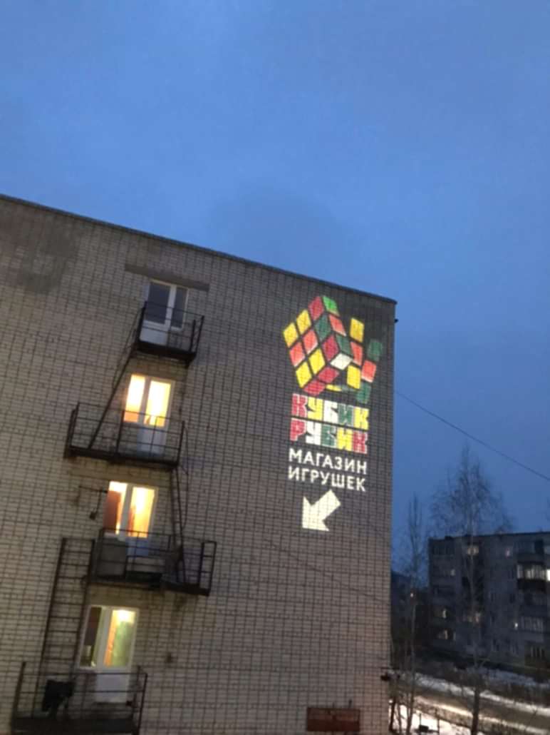 Гобо-проекторы-сравнительно новый инструмент рекламы для Алматы, который уже был оценён по достоинству крупными компаниями, такими как Учебный центр «Перспектива», «Русский свет», сеть магазинов косметики «PinUp» Ami” и другими!